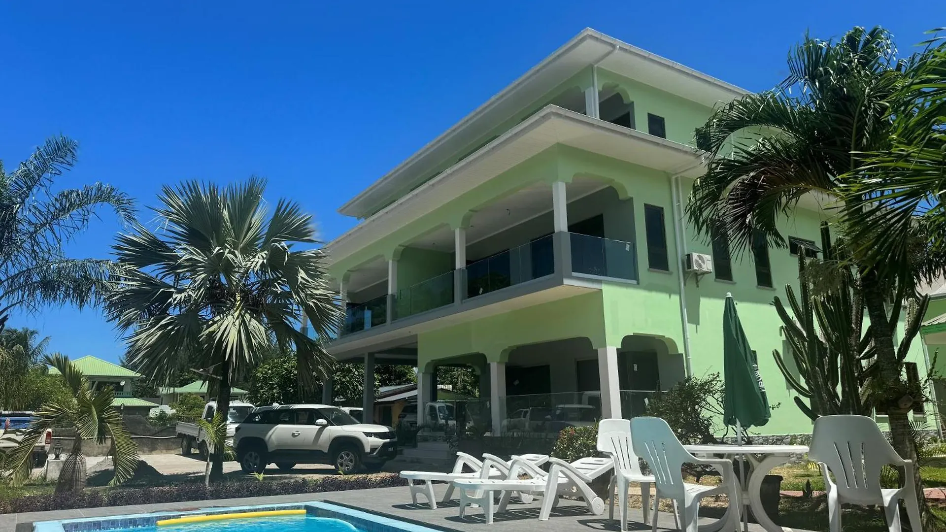 El Green Palm Self Catering Anse aux Pins está a alrededor de 25 minutos andando de la Takamaka Rum Distillery. Ofrece un balcón y una zona de estar con vistas al jardín. Los viajeros de ocio disfrutarán de terraza y jardín y de servicios de lujo como una piscina exterior.
